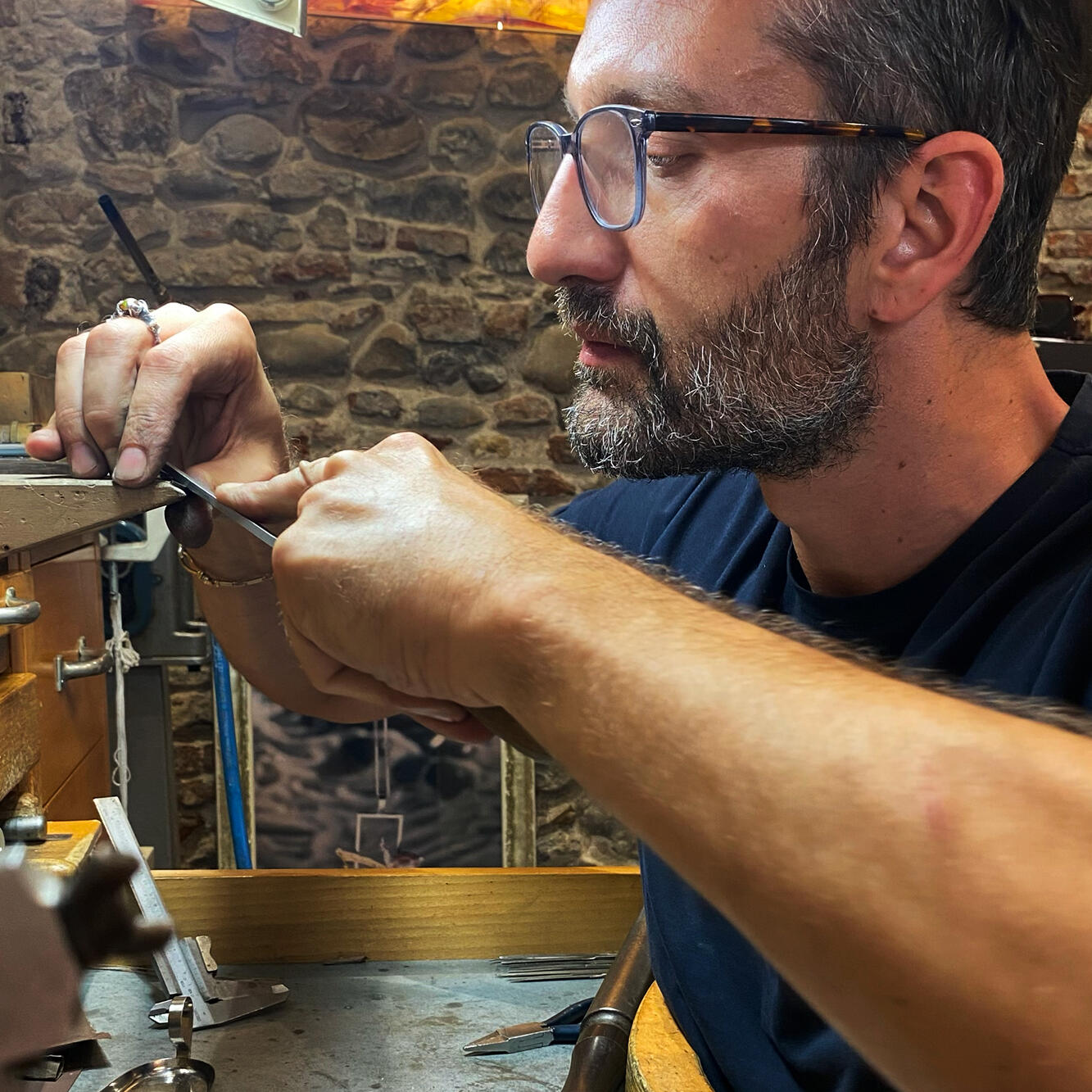 Nel silenzio del laboratorio, la materia prende forma.Da più di 20 anni lavoro metalli e pietre con gesti lenti, artigianali e consapevoli, creando pezzi unici disegnati per i miei clienti su commissione o ispirato dalla passione, dalle emozioni.Con il mio lavoro tendo all’unicità,